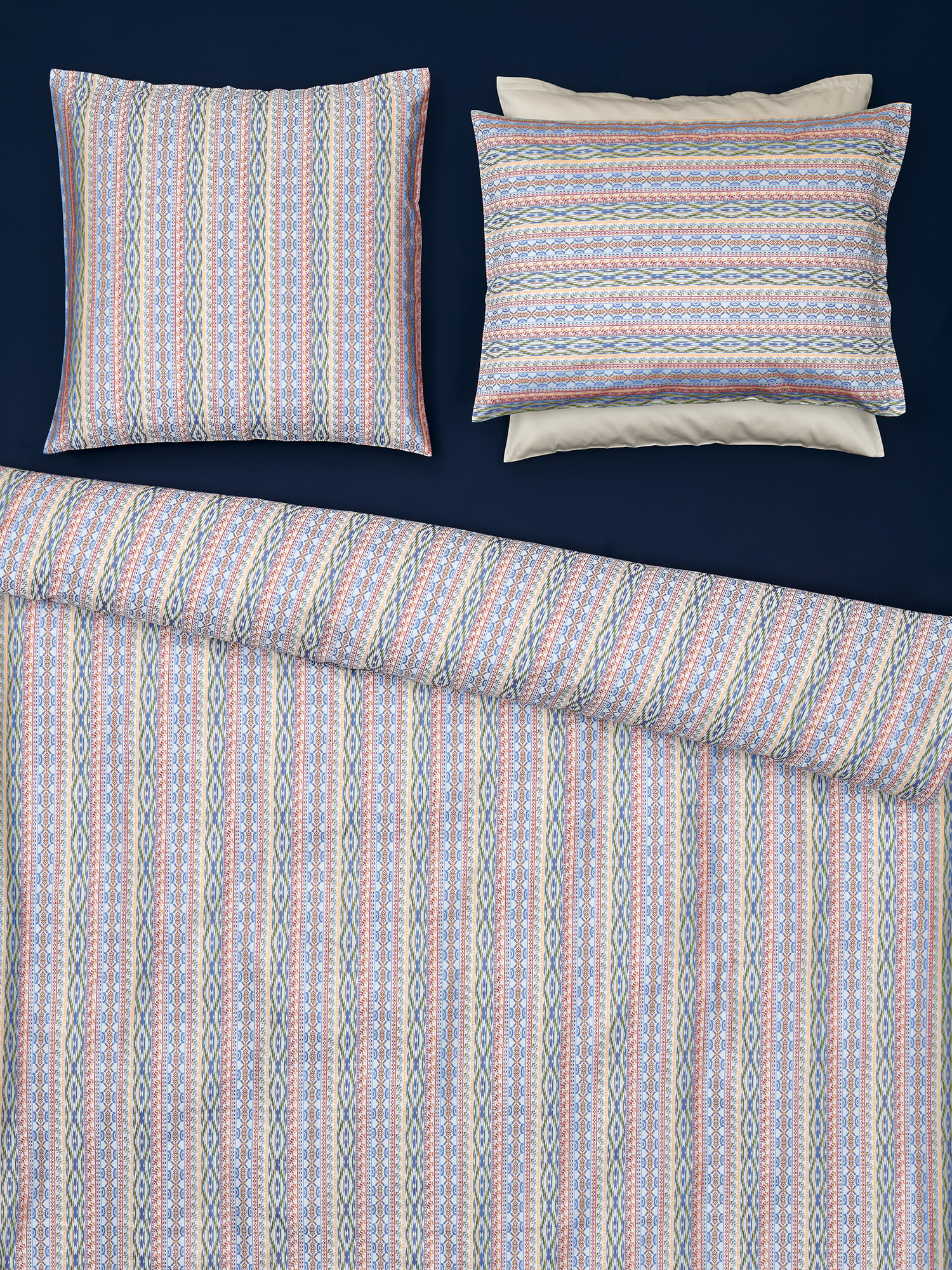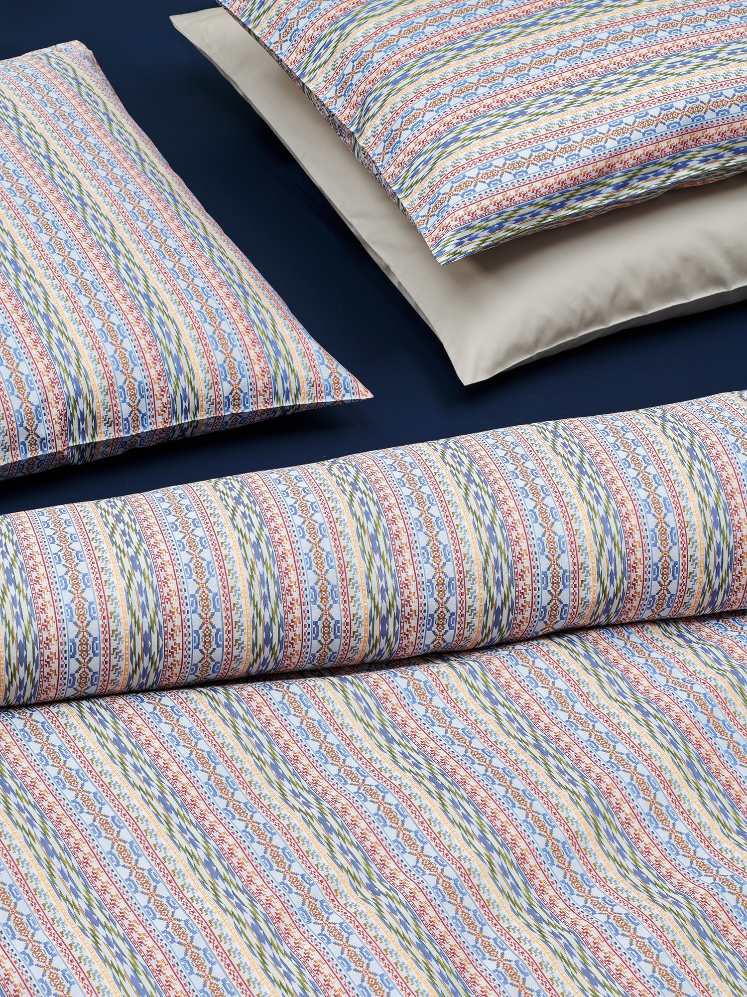Für den Christian Fischbacher Satin verwenden wir ausschließlich zertifizierte Supima-Extra-Langstapel-Baumwolle von höchster Qualität. Unser Garn lassen wir in der sogenannten „Schweizer Einstellung“ zu unserem berühmten Satin verweben. Durch die Kombination des edlen Garns, der speziellen Webart und der Veredelung (Merzerisierung, Färbung und Endausrüstung) erhält er seinen ganz eigenen, eleganten Glanz, und ist mit 100 g/m2 viel weicher und leichter als andere Bettwäsche Satins. Der Stoff wird bei unseren Schweizer Partnern her- gestellt, mit denen wir zum Teil schon seit über 100 Jahren zusammenarbeiten.