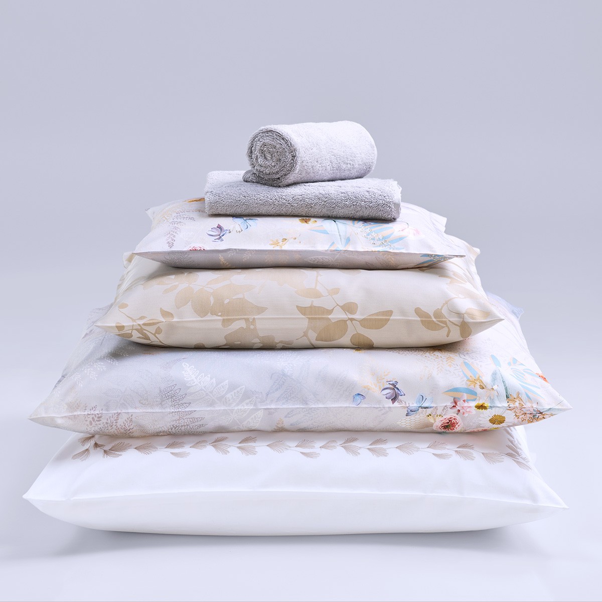 Für den Christian Fischbacher Satin verwenden wir ausschließlich zertifizierte Supima-Extra-Langstapel-Baumwolle von höchster Qualität. Unser Garn lassen wir in der sogenannten „Schweizer Einstellung“ zu unserem berühmten Satin verweben. Durch die Kombination des edlen Garns, der speziellen Webart und der Veredelung (Merzerisierung, Färbung und Endausrüstung) erhält er seinen ganz eigenen, eleganten Glanz, und ist mit 100 g/m2 viel weicher und leichter als andere Bettwäsche Satins. Der Stoff wird bei unseren Schweizer Partnern her- gestellt, mit denen wir zum Teil schon seit über 100 Jahren zusammenarbeiten.