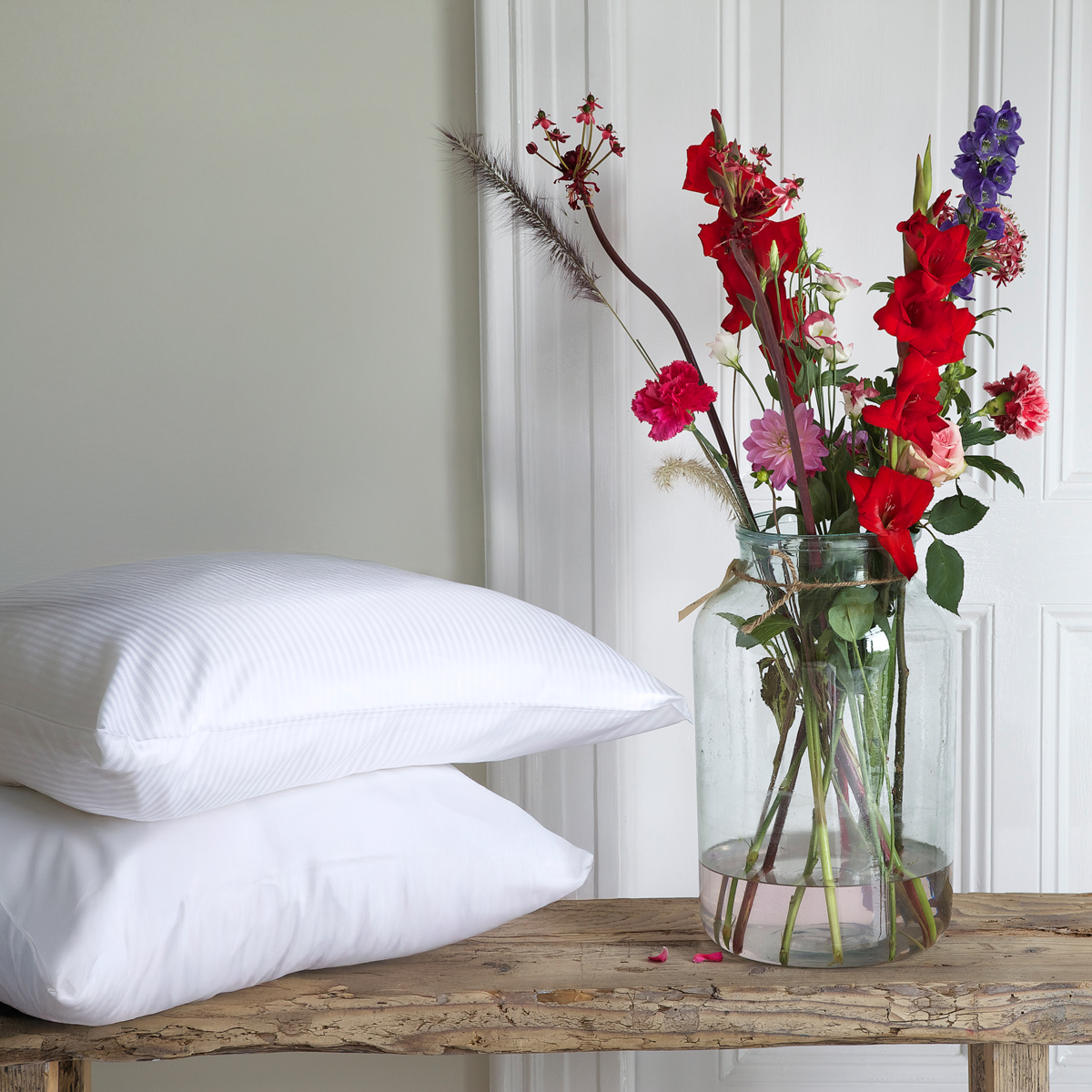 Für den Christian Fischbacher Satin verwenden wir ausschließlich zertifizierte Supima-Extra-Langstapel-Baumwolle von höchster Qualität. Unser Garn lassen wir in der sogenannten „Schweizer Einstellung“ zu unserem berühmten Satin verweben. Durch die Kombination des edlen Garns, der speziellen Webart und der Veredelung (Merzerisierung, Färbung und Endausrüstung) erhält er seinen ganz eigenen, eleganten Glanz, und ist mit 100 g/m2 viel weicher und leichter als andere Bettwäsche Satins. Der Stoff wird bei unseren Schweizer Partnern her- gestellt, mit denen wir zum Teil schon seit über 100 Jahren zusammenarbeiten.