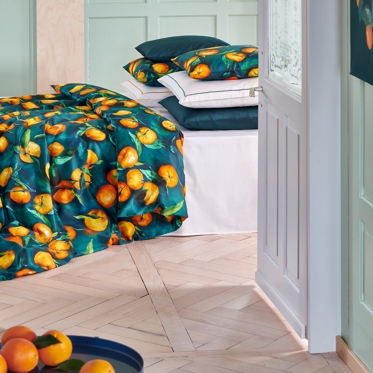 Für den Christian Fischbacher Satin verwenden wir ausschließlich zertifizierte Supima-Extra-Langstapel-Baumwolle von höchster Qualität. Unser Garn lassen wir in der sogenannten „Schweizer Einstellung“ zu unserem berühmten Satin verweben. Durch die Kombination des edlen Garns, der speziellen Webart und der Veredelung (Merzerisierung, Färbung und Endausrüstung) erhält er seinen ganz eigenen, eleganten Glanz, und ist mit 100 g/m2 viel weicher und leichter als andere Bettwäsche Satins. Der Stoff wird bei unseren Schweizer Partnern her- gestellt, mit denen wir zum Teil schon seit über 100 Jahren zusammenarbeiten.