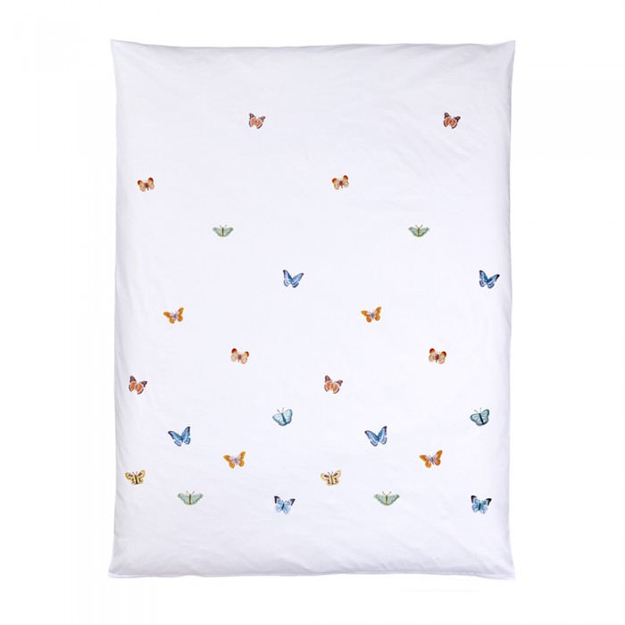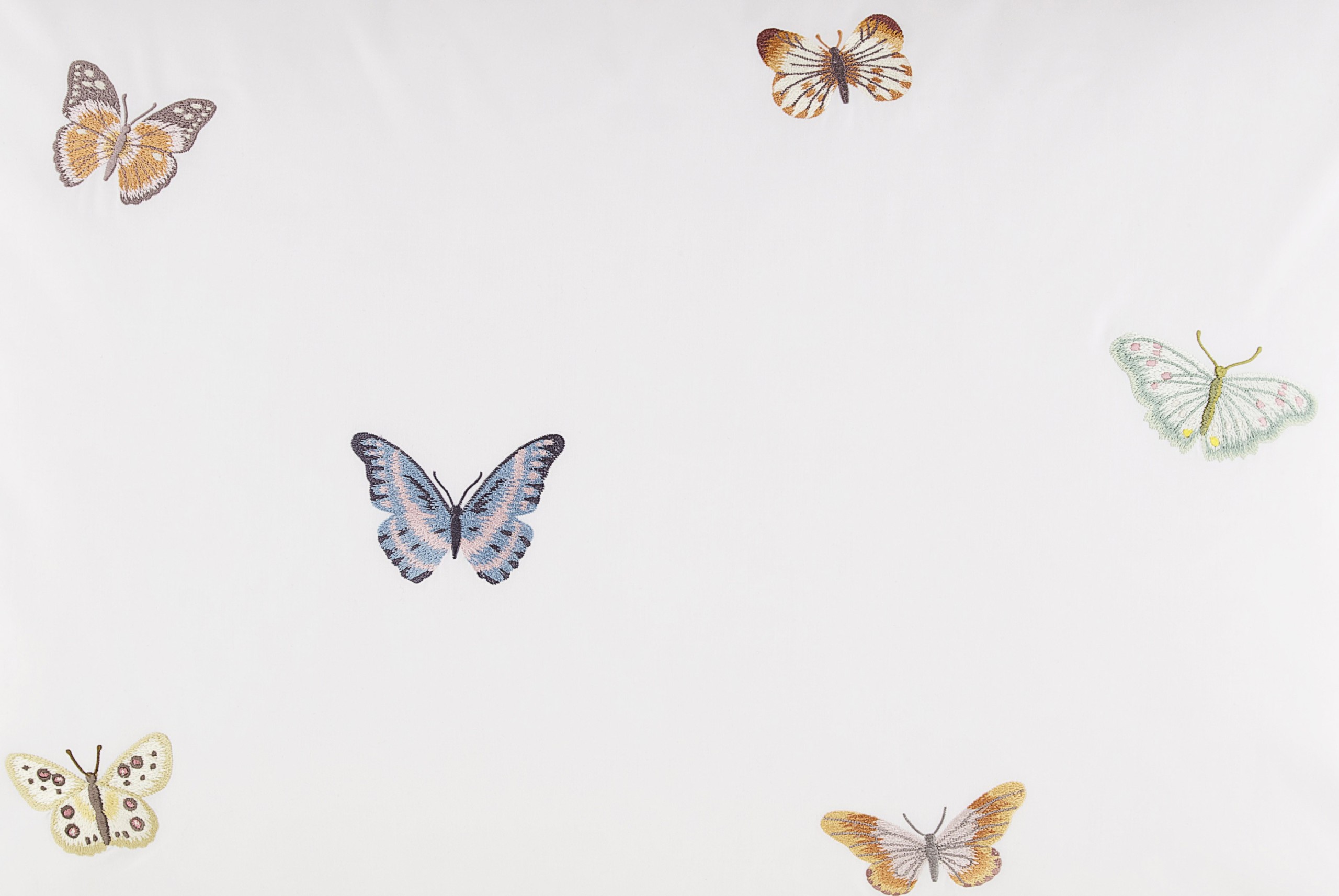 Der Traum vom ewigen Frühling geht mit BUTTERFLY in Erfüllung: Auf feinstem Satin-Gewebe tanzen handgestickte Schmetterlinge auf weißem Fond. Die zarten Falter bezaubern mit malerischen Farbkompositionen und der Liebe zum Detail.